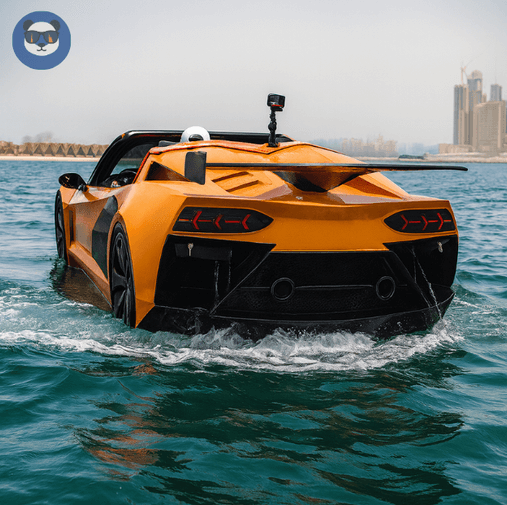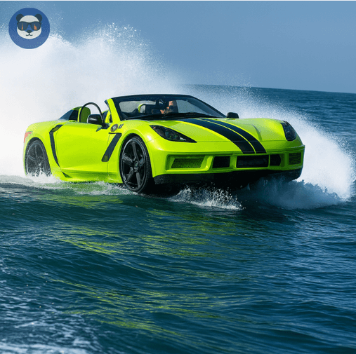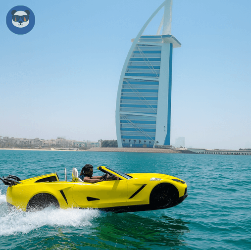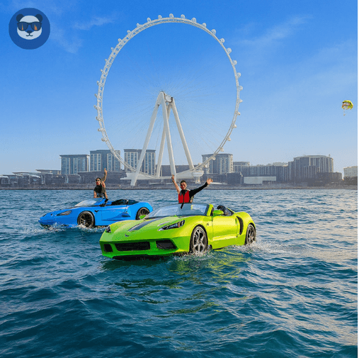 The water jet car looks like a luxury sports car but moves like a jet ski β a one-of-a-kind adventure in Dubai.