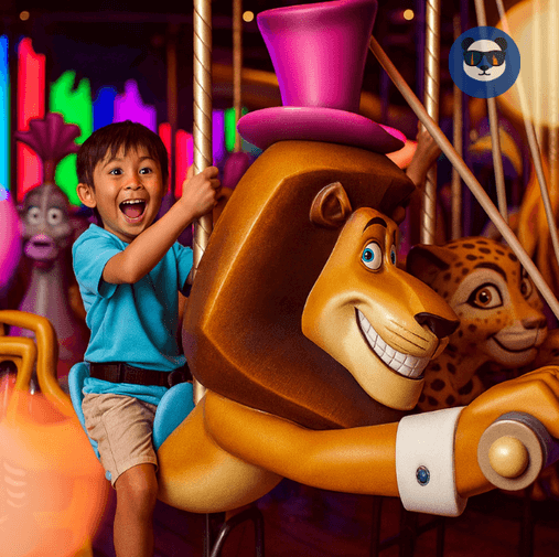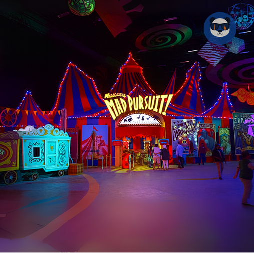 - Madagascar Mad Pursuit ride – a high-speed indoor roller coaster adventure.
